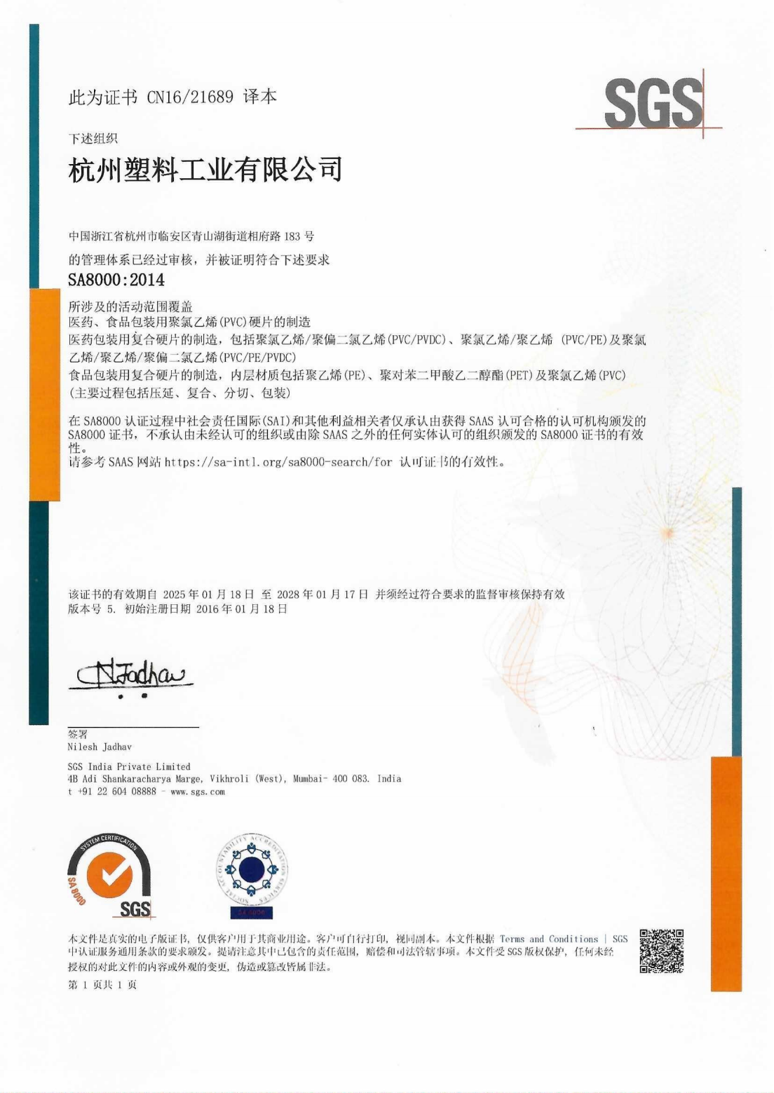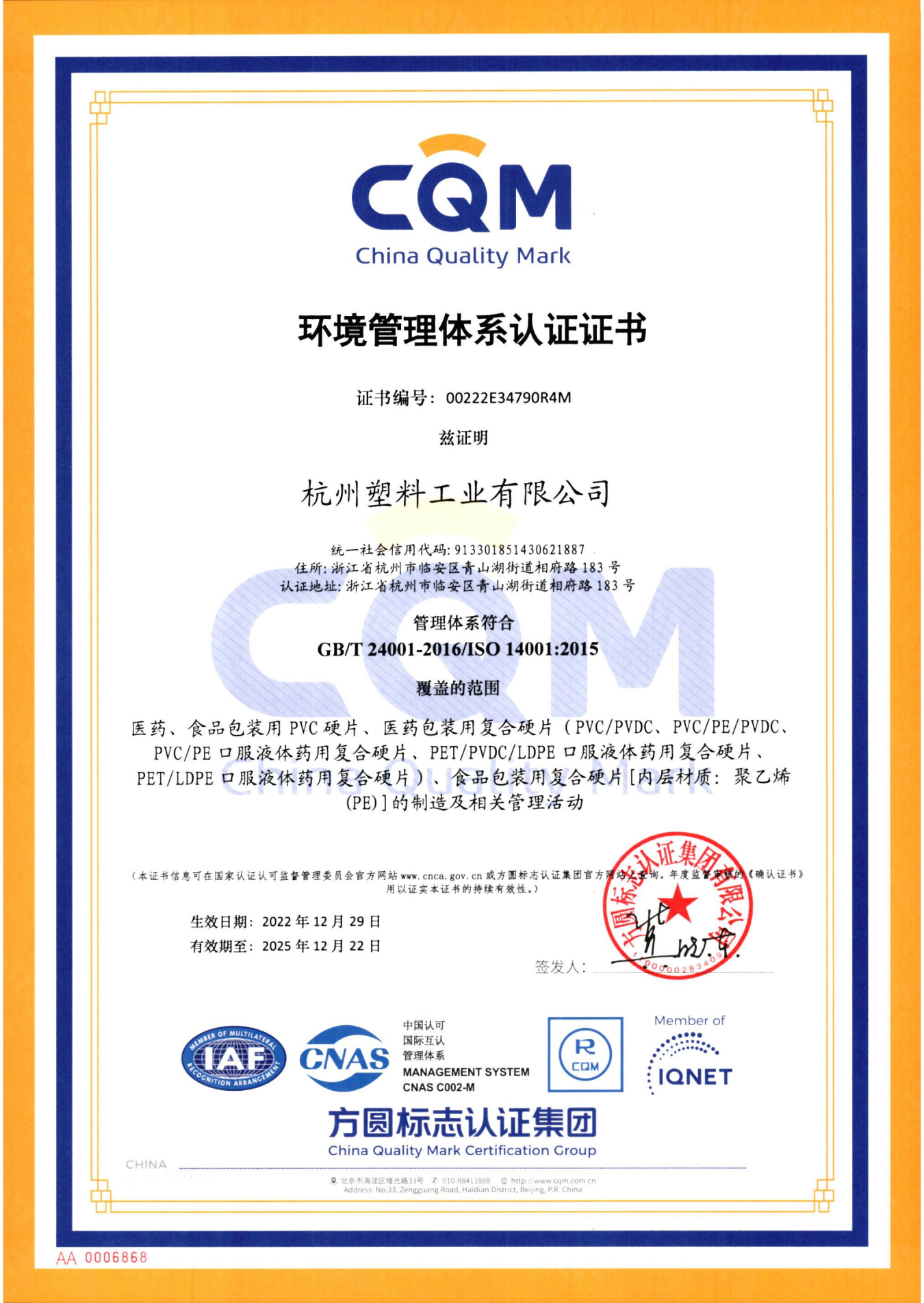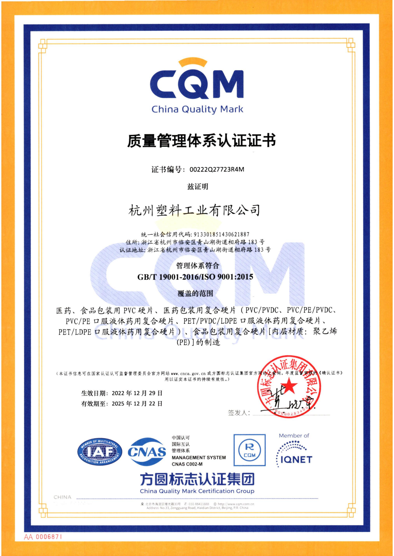 质量证书